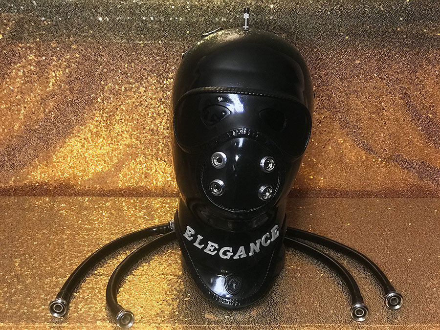 Diese Latexmaske verfügt über eine doppelwandige Konstruktion, die über das Ventil am Scheitel aufgeblasen wird. Hierdurch erhöht sich der Innendruck auf Gesicht und Kopf. Durch das eng anliegende dicke Latexmaterial werden zudem die Sinne betäubt. Der Sub wird seiner Dom in jeder Lage ausgeliefert sein. Passend für Kopfumfang von 55 cm bis 62 cm, Halsumfang von 35 cm bis 44 cm.