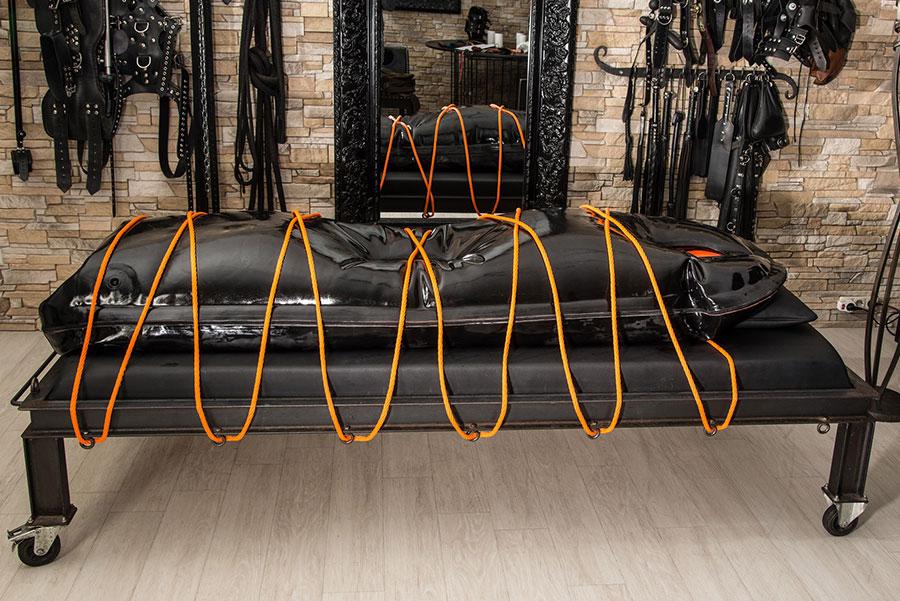Bestehend aus zwei separaten Luftkammern bietet dieser Bondagesack(BS3) aus hochwertigem, feinen Latex ein tolles Gefühl auf der Haut. Die seitlichen YKK-Reißverschlüsse verbinden die beiden Kammern. Für Dich gibt es wahlweise eine Gesichts- und Geschlechtsöffnung, jedoch verhindert dieser Latexsack sämtliche Bewegungen. Du bist damit Deiner Herrin vollkommen ausgeliefert und sie kann sich an Dir bereichern und ergötzen.