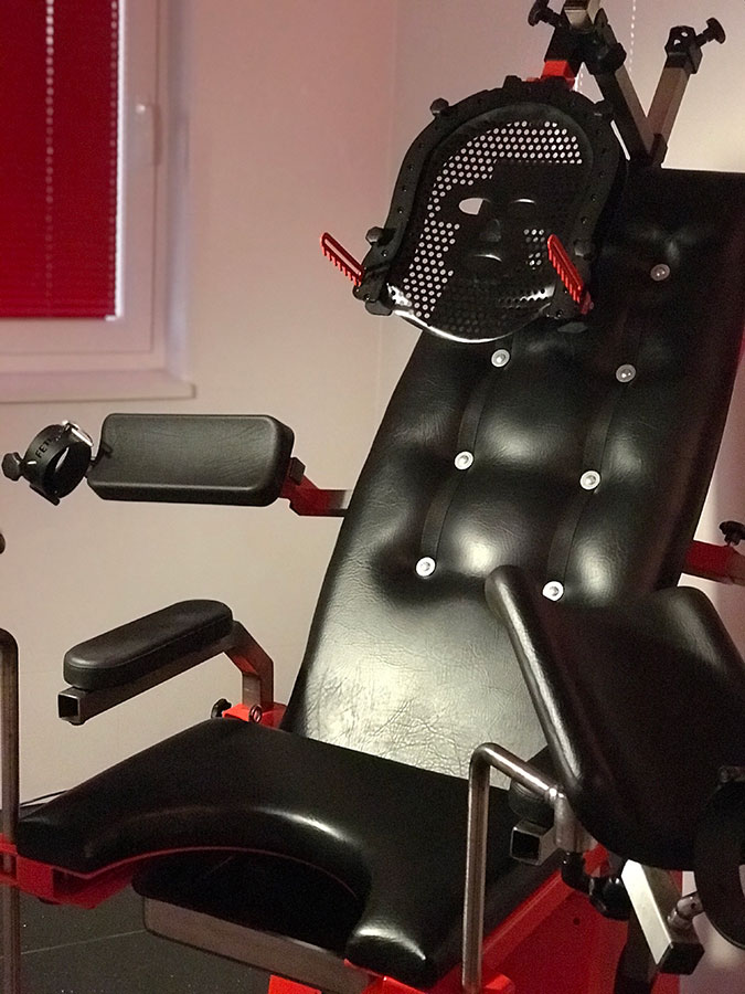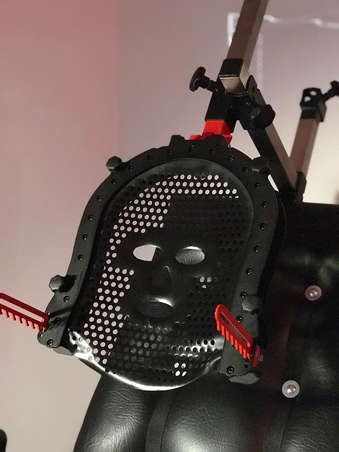 Intensiviert Eure Behandlung am Gynstuhl durch das Hinzufügen der Kopffixierungsmaske Warrior und Fick-Maschine
