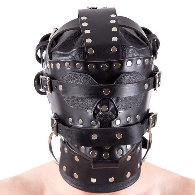 Diese hochwertige Ledermaske ist sehr restriktiv. Es enthält ein Halsband mit D-Ringen, separate Augenklappe und Knebel zum Festschnallen. Mit mehreren Schnallenverschlüssen ist diese Maske sehr praktisch und schnell anzuwenden. Der Mundbereich kann auch mit Reißverschluss geschlossen werden.